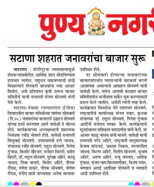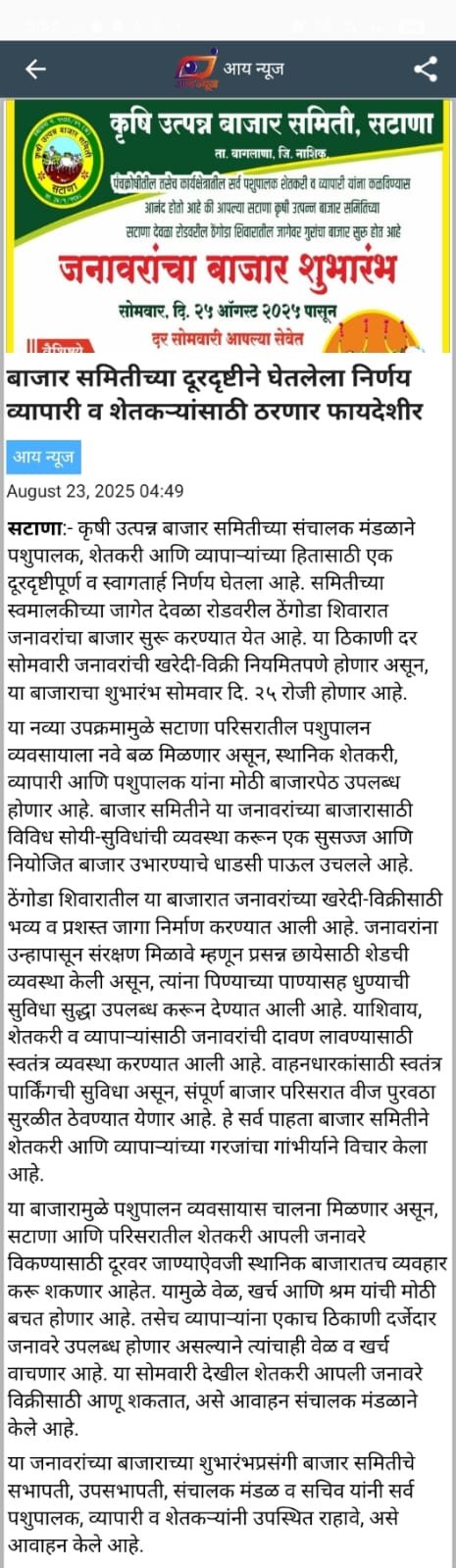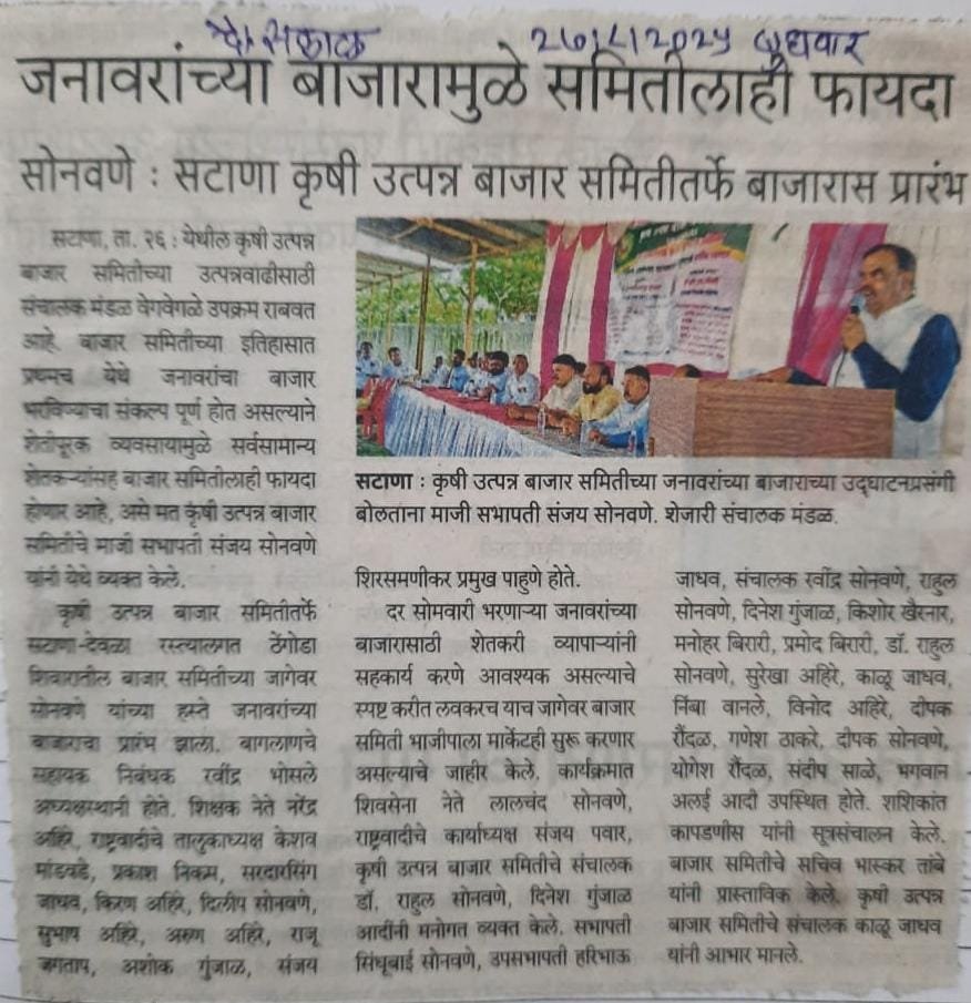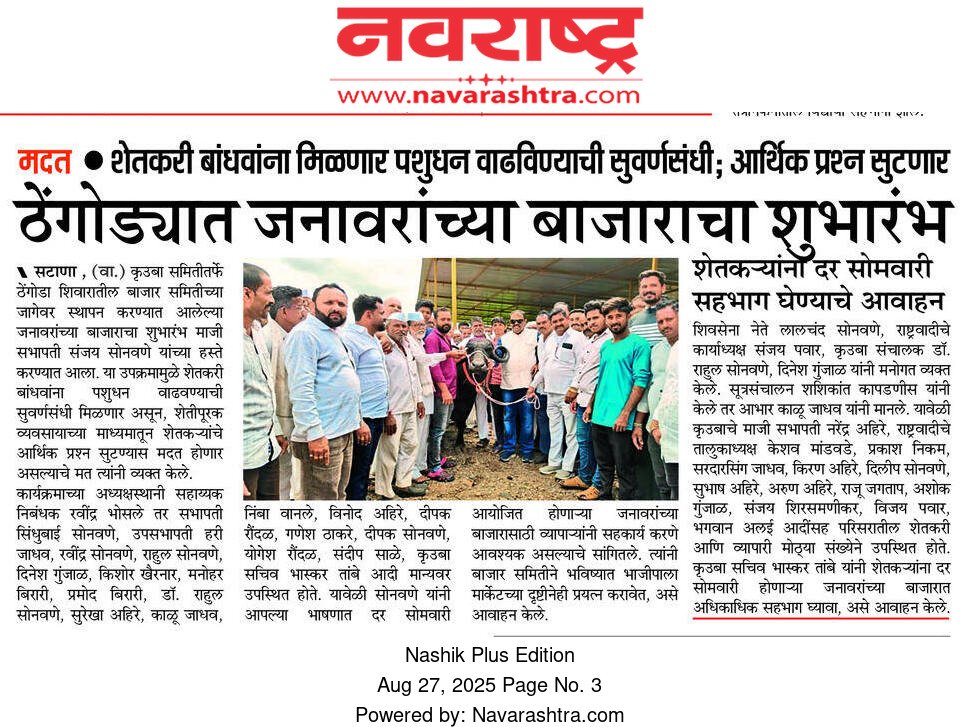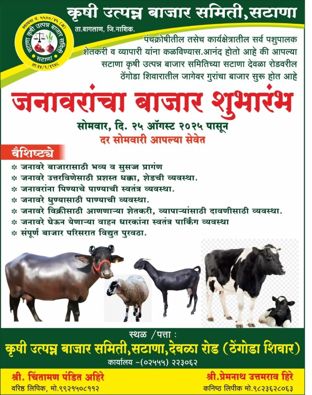 जनावरांचा बाजार शुभारंभ सोमवार दि. २५ ऑगस्ट २०२५ पासून दर सोमवारी आपल्या सेवेत