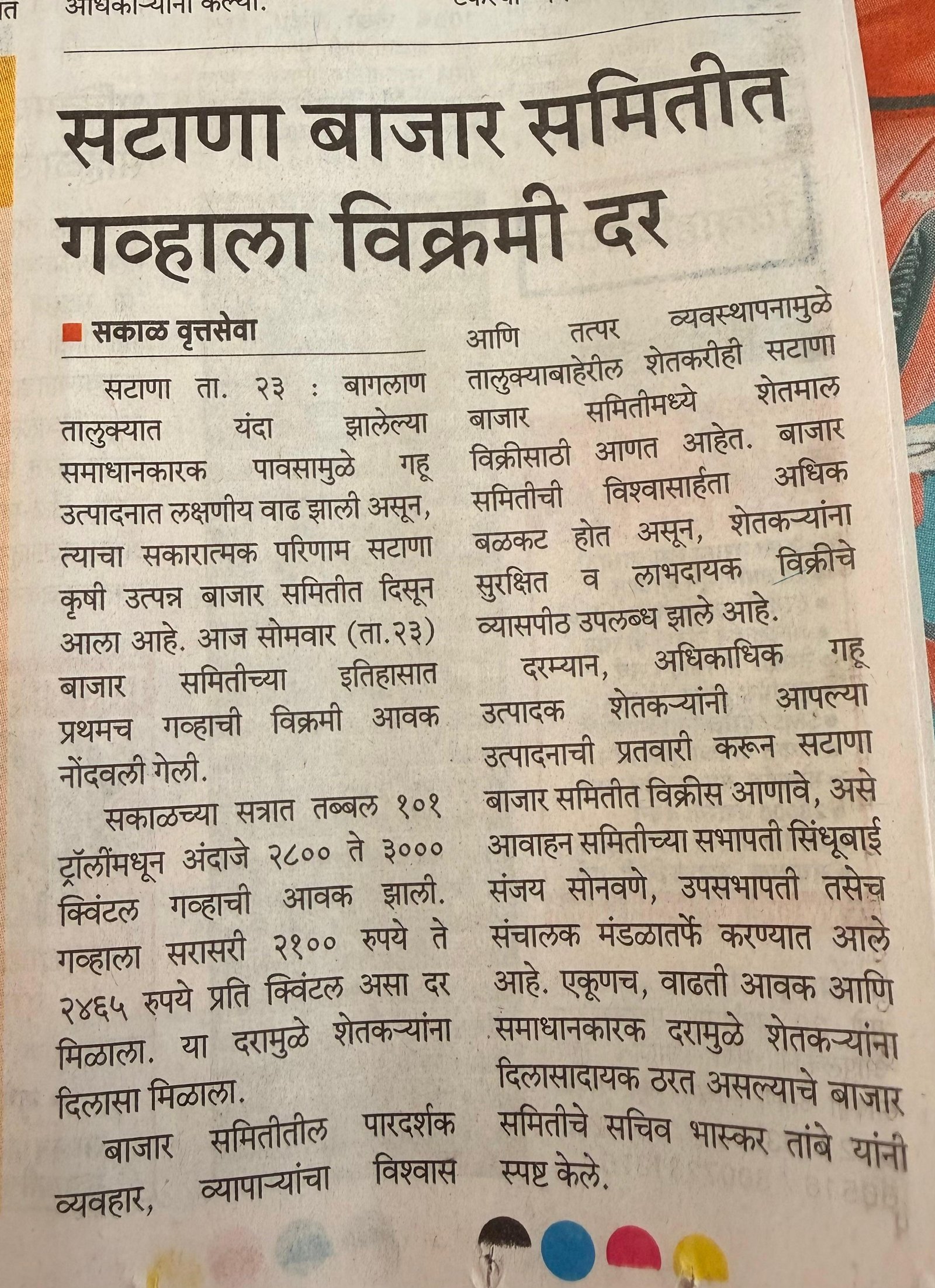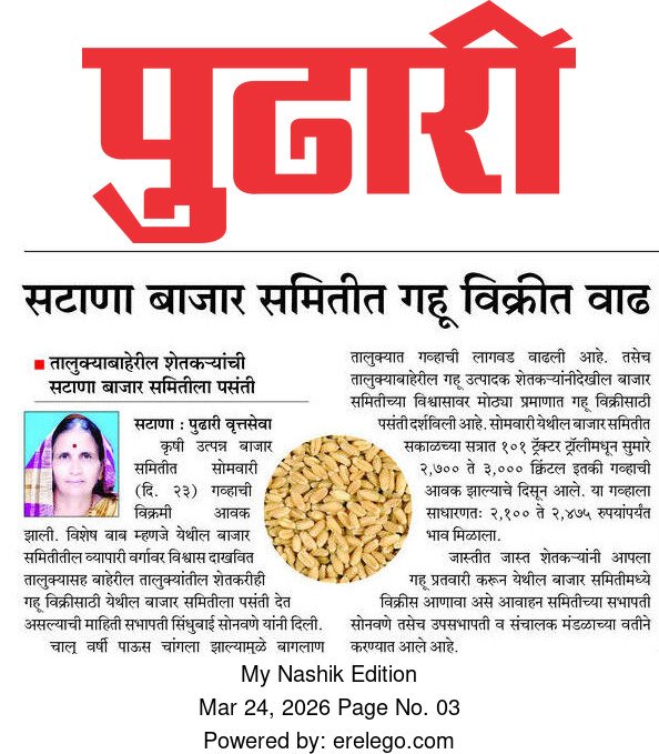 सटाणा कृषि उत्पन्न बाजार समिति मध्ये गव्हाची विक्रमी आवक