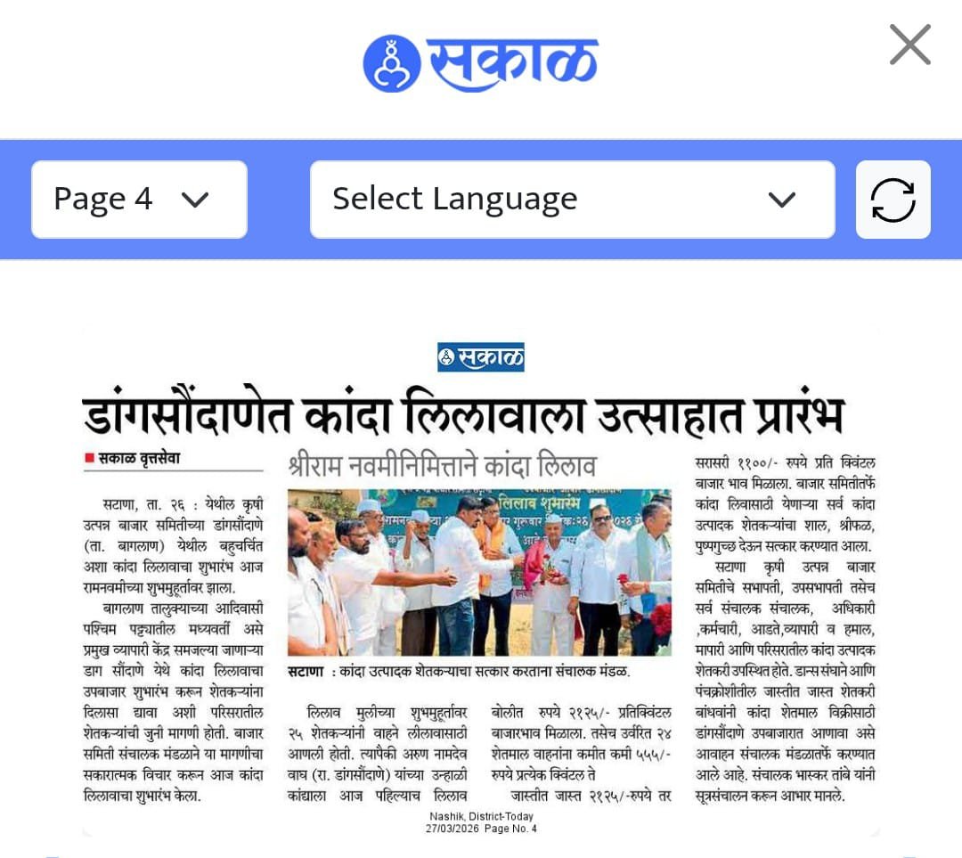 कृषि उत्पन्न बाजार समिती,सटाणा उपबाजार डांगसौंदाणे श्री राम नवमीच्या शुभ मुहूर्तावर कांदा लिलाव शुभारंभ