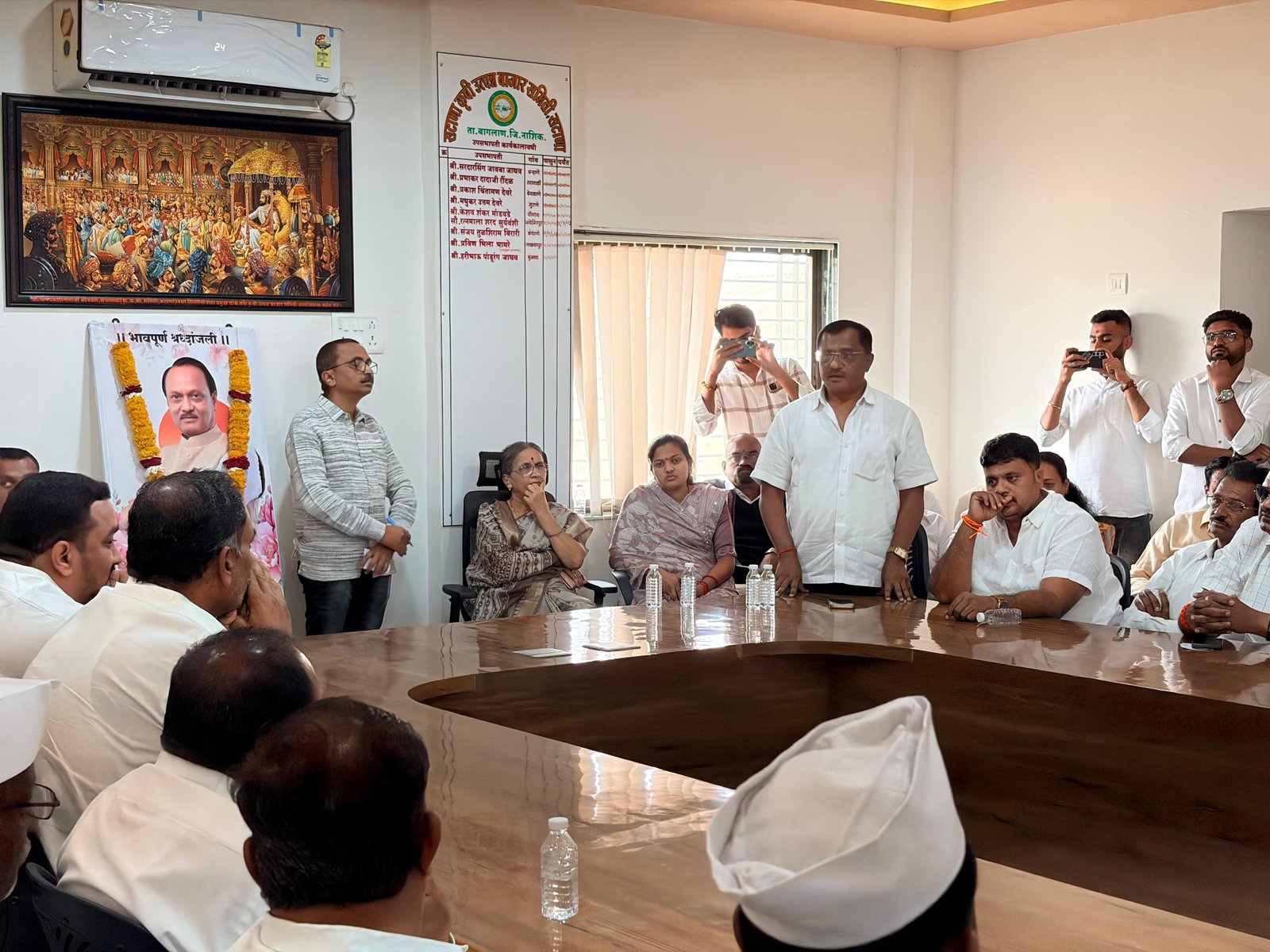 राज्याचे दिवंगत उपमुख्यमंत्री मा. अजितदादा पवार यांना सटाणा कृषि उत्पन्न बाजार समिति कार्यालयात सर्व पक्षीय शोकसभेत भावपूर्ण श्रद्धांजली अर्पण करण्यात आली
